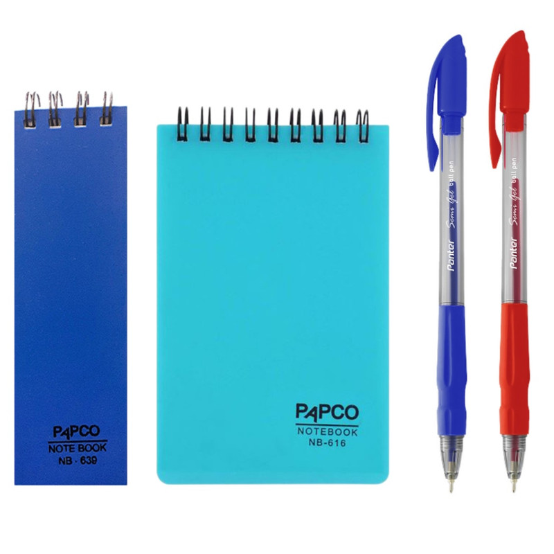 دفتر 100 برگ پاپکو فوق العاده شیک و محکم و با کیفیت . ابعاد 13×8.8 سانت. به همراه یک عدد دفتر یادداشت پاپکو 40 برگ به ابعاد 5.5×13 سانت. یک عدد خودکار پنتر سمی ژل آبی و یک عدد قرمز هم هدیه به مشتری عزیز است.