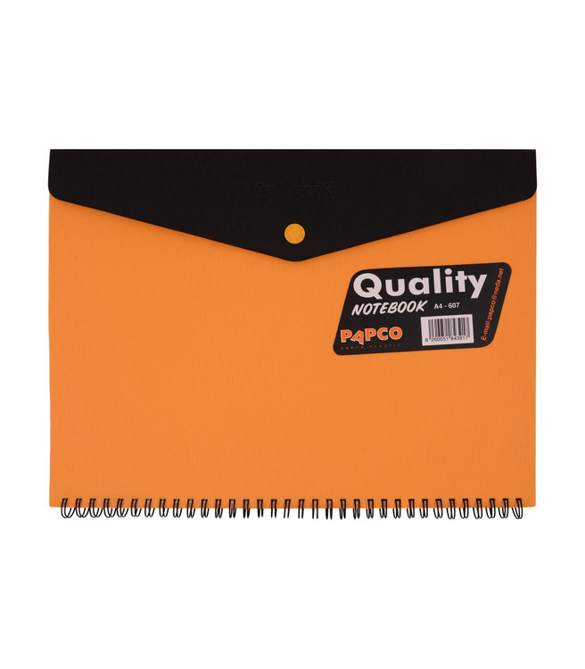 این دفتر خاص، شبیه به یک پاکت نامه طراحی شده است. دفتر مشق «پاپکو» (Papco) کد (A4-607)، ظاهری منحصربهفرد، جلدی محکم و صحافی مناسبی دارد. جلد دفتر از جنس پلاستیک است و با یک دکمه بسته میشود. با این نوع طراحی جلد، خیالتان از بابت آسیب ندیدن برگههای دفتر راحت است. جلد پلاستیک در برابر خیس شدن و رطوبت کاملاً مقاوم است. در صحافی دفتر از فنر دوبل استفاده شده که برای ورق زدن راحت برگههای دفتر به شما کمک میکند. پاپکو 80 برگ خطدار دارد و برای یک سال تحصیلی کافی به نظر میرسد. دفتر مشق پاپکو، ضمایمی مثل جدول برنامهریزی ، ثبت گزارش، تقویم و جدول ثبت تلفن دارد و از این نظر دفتری کاربردی محسوب میشود. پاپکو 29.7 سانتیمتر طول و 21 سانتیمتر عرض دارد. اگر دانشجو هستید و به ظاهر و کیفیت دفتر اهمیت میدهید، دفتر پاپکو کد A4-607 میتواند انتخابی ایدئال برای شما باشد.