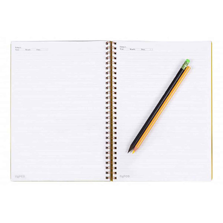 این دفترهای 100 برگ با رنگ جلدهای مختلف و از کاغذی با کیفیت و بسیار لطیف تولید و عرضه شده است. صحافی این دفتر به صورت فنر دوبل بوده که این خود به راحت باز و بسته شدن و ورق خوردن دفتر کمک می کند. این دفتر محصولی مناسب برای استفاده به عنوان دفتر مشق و انگلیسی مناسب برای دانش آموزان بوده و به خاطر داشتن فنر قوی و جلد محکم آسیب کمتری دیده و دانشجویان نیز می توانند برای جزوه نویسی دروس مختلف خود از آن استفاده کنند.بالای کادر هر کدام از این برگه ها نیز یک سانت یک سانت نشانه گذاری شده و کمک می کند جدول کشی در این دفتر به آسانی و بدون نیاز به خط کش انجام شود.