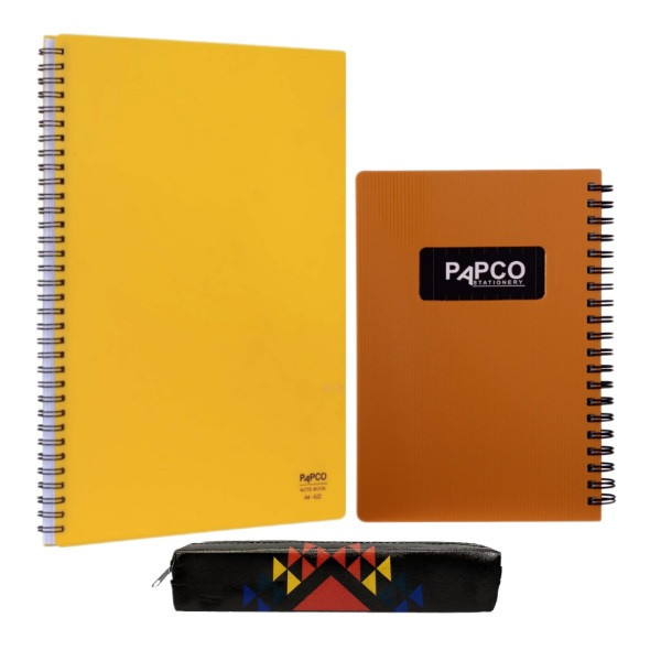 یک عدد دفتر 603 پاپکو 80 برگ آ4 پاپکو و یک عدد دفتر یادداشت 647 پاپکو 100 برگ 18×12