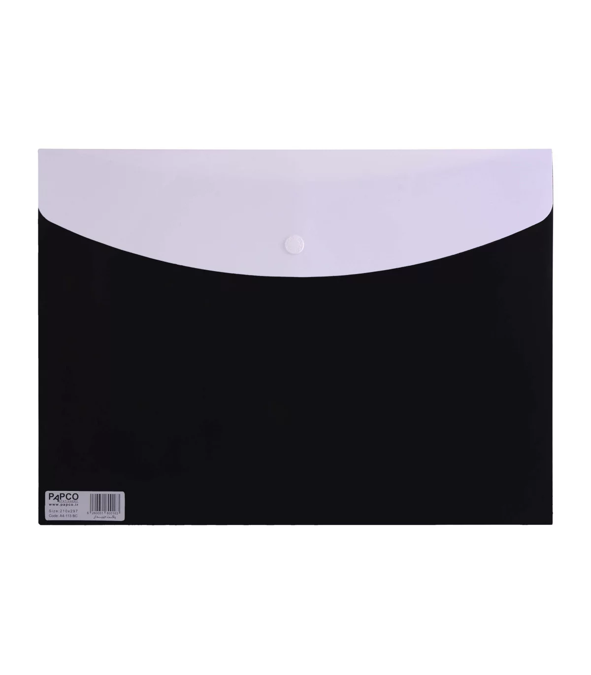این فولدر از جنس پلاستیک متالیک بوده و مواد اولیه مورد استفاده در تولید آن بسیار مرغوب و باکیفیت است. در هشت رنگ متنوع تولید شده و درب آن به وسیله یک دکمه پلاستیکی بسته می شود و فضایی امن را برای نگهداری برگه ها و مدارکتان ایجاد می کند. همچنین در قسمت پشتی یک جیب بزرگ به ابعاد 30 × 23.5 سانتی متری دارد که می توان در آن تعداد زیادی برگه A4 قرار داد.