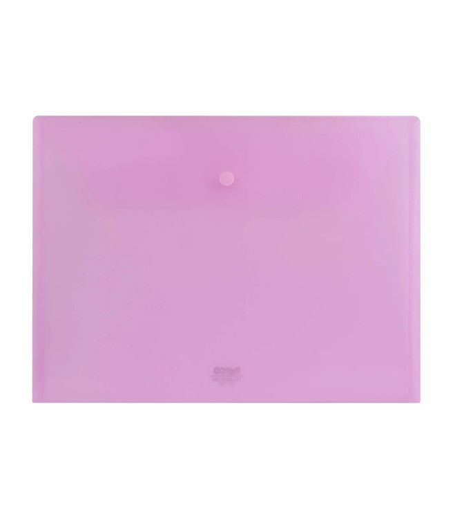 پاکت دکمه دار شفاف A4 کد A4– 105T در شانزده رنگ متنوع تولید شده و ظرفیت نگهداری حداقل 50 عدد برگه A4 را دارد.