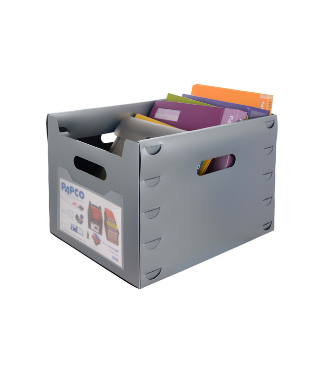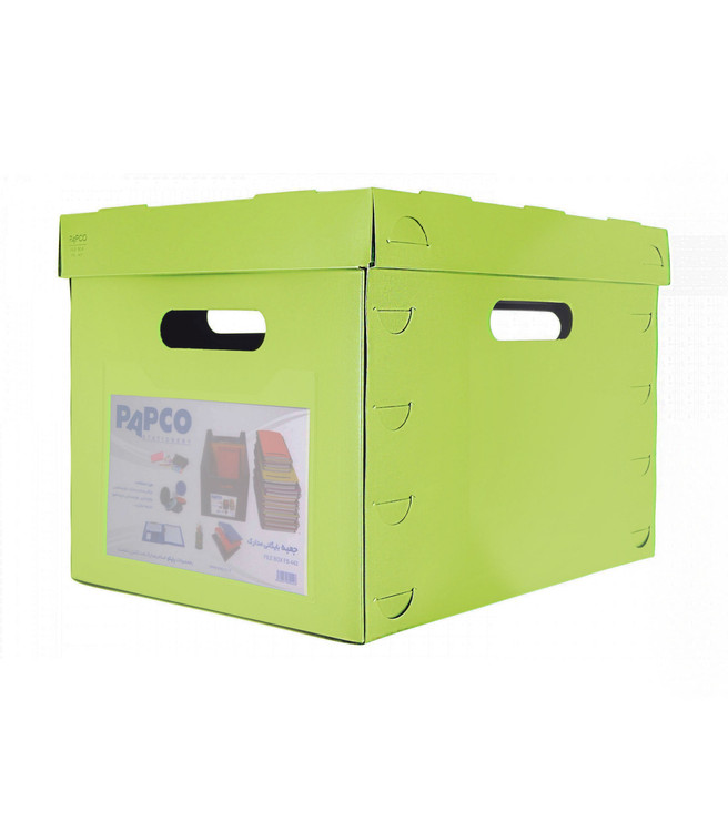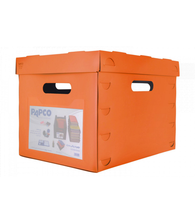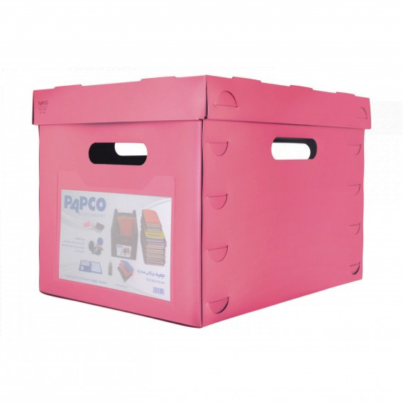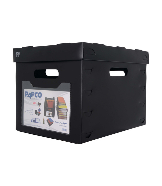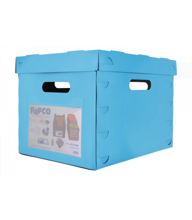 جعبه بایگانی مدارک پاپکو با ابعاد داخلی 33.4 × 42 × 30.3 سانتی متر طراحی و تولید شده که می تواند پرونده، اسناد و مدارک زیادی را در خود جای دهد و جنس آن به قدری محکم و با دوام است که با قرار دادن وسایل زیاد در آن نمی شکند و آسیب نمی بیند، همچنین برای راحتی حمل دسته هایی در چهار طرف آن و برای جلوگیری از نفوذ گرد و خاک و کثیف شدن وسایل دری روی آن تعبیه شده است.