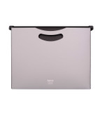 باکس بایگانی رومیزی در چهار رنگ مات مشکی، سرمه ای، نقره ای و بنفش در ابعاد 7.5 × 31.5 × 26 سانتی متر عرضه می گردد. جنس این محصول از پلاستیک باکیفیت و مقاوم بوده که بهترین محافظ برای اسناد و مدارک با طول عمر بیشتر است و به دلیل وزن کم (735 گرم) و داشتن دستگیره، باعث حمل و جابجایی راحت تر پرونده ها می شود.