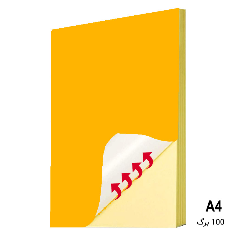 کاغذ پشت چسب دار مات زرد سایز A4 بسته 100 برگی