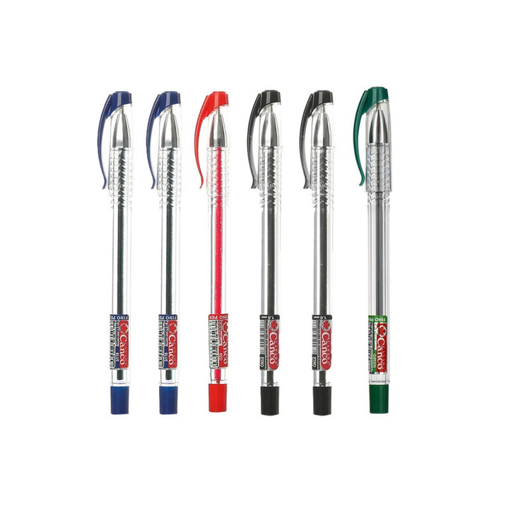 خودکار کنکو فینو رنگ آبی - قرمز - مشکی - سبز دارای ضخامت نوشتاری 1 میلی متر است و مناسب برای کسانی است که ترجیح می دهند پررنگ و نه چندان باریک بنویسند. خودکار از جمله نوشت افزارهای پرکاربردی است که بایستی ویژگی های خاصی داشته تا طرفداران خود را پیدا کند. خودکاری با جوهر پررنگ و رنگ جذاب و شفاف، به صورتی که مناسب بر روی کاغذ بنشیند و جوهر پس ندهد را می توان به عنوان خودکاری با کیفیت معرفی نمود و خودکار کنکو فینو این ویژگی ها را داراست. به همین دلیل است که برند CANCO برندی پرطرفدار بوده و خریداران خاص و منحصر به فرد خود را دارد. بدنه پلاستیکی و شفاف این خودکار به شما این امکان را می دهد تا بتوانید میزان جوهر درون آن را ببینید و هنگام اتمام آن بتوانید به موقع اقدام نموده و خودکار دیگری را جایگزین نمایید. این خودکار علاوه بر کیفیت خوب, دارای قیمت ارزان و مناسبی است که باعث شده در بین دانش آموزان و دانشجویان به یک لوازم التحریر پرطرفدار تبدیل شود همچنین درب گیر دار این خودکار کمک می کند تا آن را در داخل جیب یا در داخل کیف به جایی متصل نمود تا بتوان به راحتی آن را پیدا کرد.